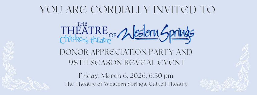 On behalf of The Theatre of Western Springs, you are cordially invited to a Donor Appreciation Party and the 98th Season Reveal.